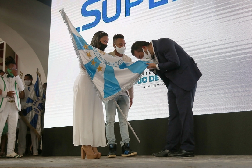 Logo após o lançamento oficial do Programa, o governador Cláudio Castro, os presidentes da LIESA, Jorge Perlingeiro, e da Liga-RJ, Wallace Palhares, representando, respectivamente, as 12 Escolas de Samba do Grupo Especial, e as 15 do Grupo de Acesso, assinaram convênio que formaliza a participação das 27 agremiações no Supera-RJ.