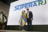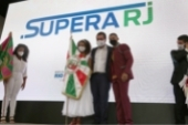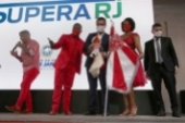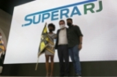 Ao lado do presidente da ALERJ, deputado André Ceciliano, o governador chamou ao palco Jaqueline de Oliveira Silva, a primeira cidadã a receber o cartão do Supera-RJ. Logo depois, mais 20 beneficiados ganharam os seus cartões do auxílio.